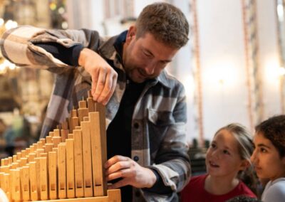 Bei den Orgel- und Pfeifenbauworkshops konnten die Teilnehmerinnen und Teilnehmer in das Handwerk des Orgelbaus hineinschnuppern. Die Offenen Orgelbänke und Orgelworkshops luden dazu ein, sich selbst an den Tasten zu versuchen und die Orgel erklingen zu lassen.